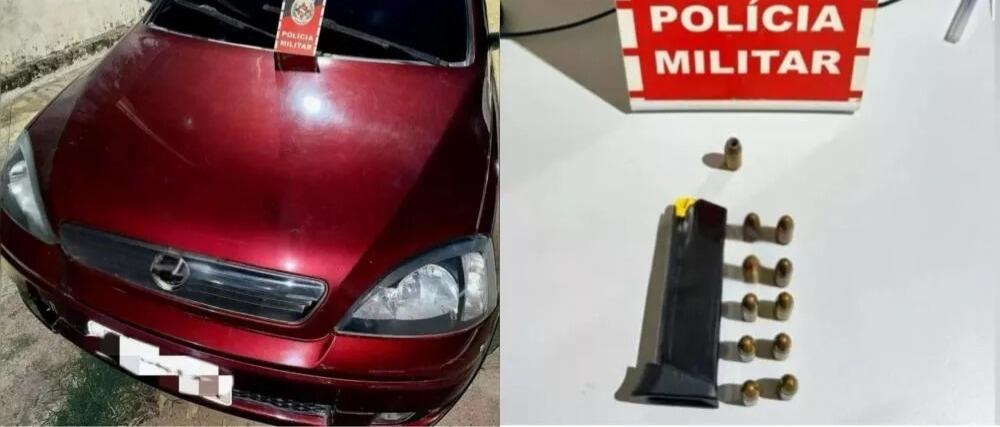 No interior do automóvel, os policiais encontraram um carregador de 9mm com 10 munições intactas, uma munição calibre .40 e um capacete preto. Além disso, foi constatado que o chassi do veículo estava adulterado e a placa não estava em conformidade com os padrões legais, levantando a suspeita de clonagem.