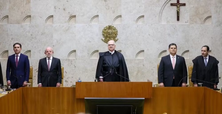 Hugo Motta, Lula, Edson Fachin, Davi Alcolumbre durante Sessão Solene de Abertura do Ano Judiciário de 2026 — Foto: Gustavo Moreno/STF