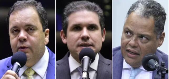 Deputados Elmar Nascimento (União - BA), Hugo Motta (Republicanos - PB) e Antonio Brito (PSD - BA) — Foto: Zeca Ribeiro/Câmara dos Deputados; Mário Agra/Câmara dos Deputados; Vinicius Loures/Câmara dos Deputados