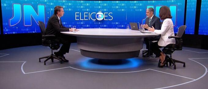 Bolsonaro foi o primeiro a ser entrevistado pelo Jornal Nacional, entre os candidatos mais bem colocados postulantes à Presidência da República.