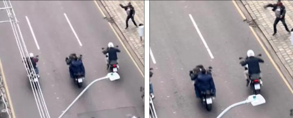 O delegado Francischini, um dos organizadores da motociata, chegou a falar em “atentado”. Ele disse que foi para a delegacia para solicitar a abertura de um inquérito “para apurar quem atentou novamente contra a vida do presidente Jair Bolsonaro”. De acordo com ele, o homem na calçada teria atirado uma pedra.