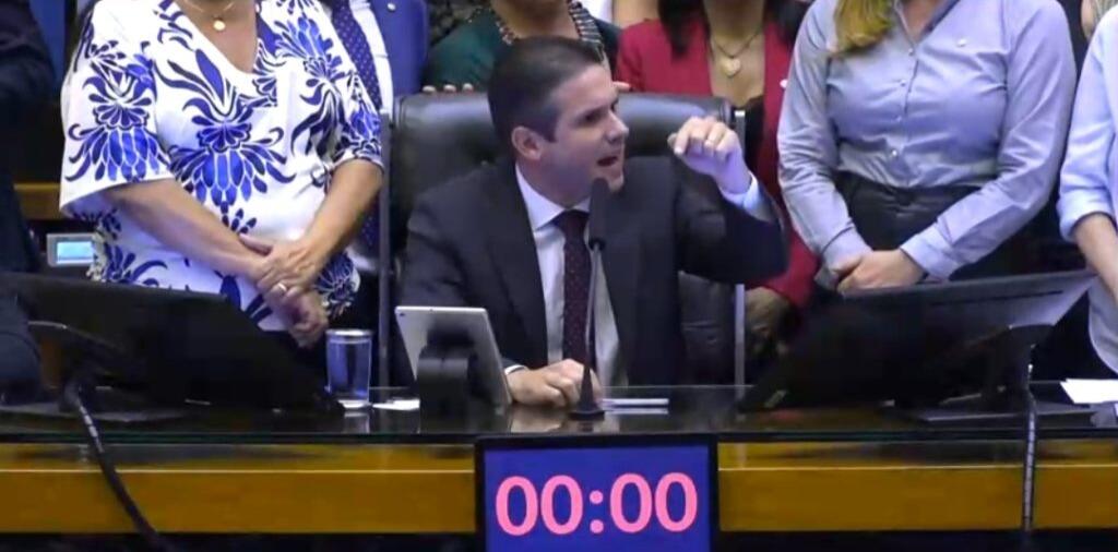 O presidente da Câmara dos Deputados, paraibano Hugo Motta (Republicanos), interveio nesta quarta-feira (19) para conter tumultos no plenário, onde parlamentares do governo e da oposição trocavam gritos de protesto de “sem anistia” e “Lula ladrão”. Diante da desordem, ele assumiu a sessão e fez um discurso firme, deixando claro que não toleraria comportamento inadequado.