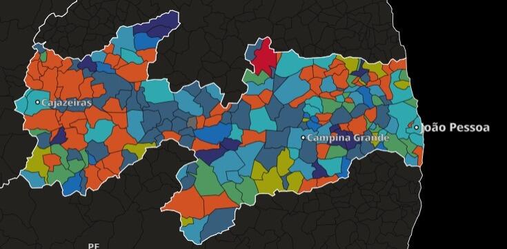 Uma parte significativa, no Sertão. Entre as cidades estão Bayeux e Sousa, Itaporanga, São José de Piranhas, Teixeira, Serraria e Bananeiras.