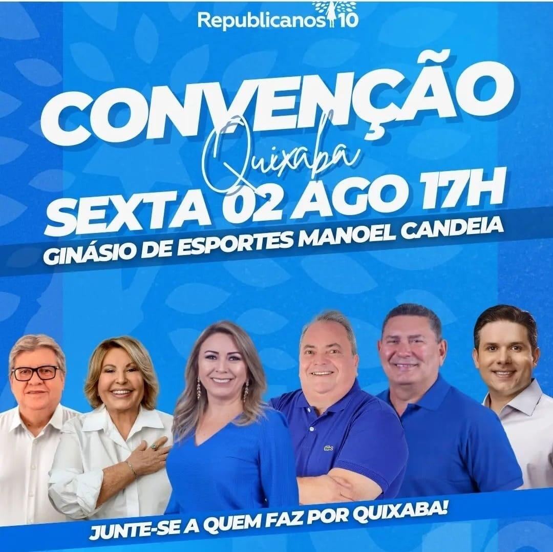 O partido Republicanos da cidade de Quixaba-PB, quem tem a prefeita Cláudia Macário como líder de situação, anunciou sua convenção partidária para o próximo dia 02 de agosto, uma sexta-feira, a partir das 17h no Ginásio de Esportes Manoel Candeia. Na oportunidade serão apesentados os nomes dos pré-candidatos a prefeito e vice e também os nomes que vão concorrer aos cargos de vereador e vereadora.