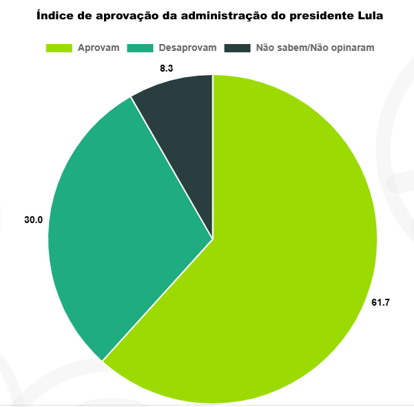 Em pesquisa divulgada nesta quarta-feira (28) pelo Instituto ANOVA, em parceria com o portal PB Agora, os dados apontam que a administração do presidente da República, Luís Inácio Lula da Silva, é aprovada por 61,7% dos paraibanos.