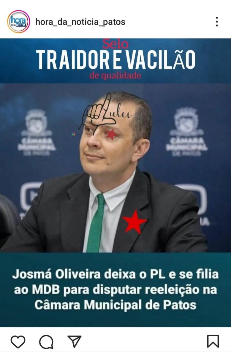 Eleitorado reprova ida de Josmá para partido da base de Lula e bolsonaristas o tacham de traidor