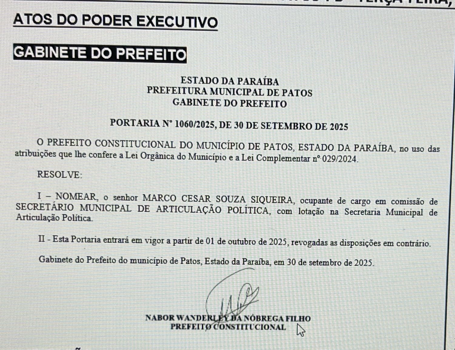 O vereador Marco César (PSB) aceitou o convite feito pelo prefeito Nabor Wanderley para assumir a titularidade da Secretaria de Articulação Política, cargo estava vago desde a reforma administrativa feita recentemente.