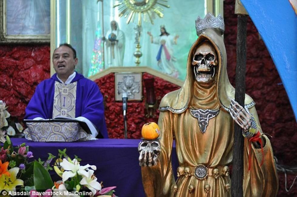 Foi a partir do México que começou a se espalhar com grande velocidade o culto à “Santa Morte”. Sua figura é representada por um esqueleto vestido com uma túnica, como se fosse uma virgem. Hoje é a data em que ela normalmente recebe mais atenção.
