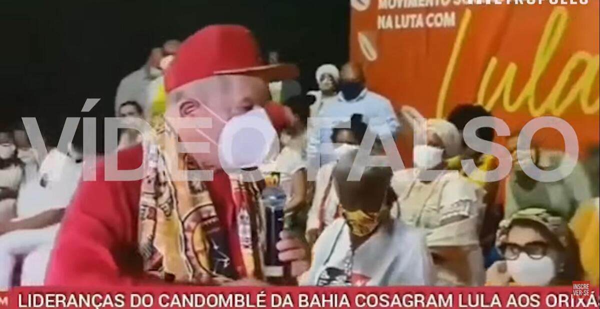 No vídeo original, que pode ser encontrado no Canal da Resistência, no YouTube, Lula disse: “Ontem, quando eu cheguei, as mulheres jogaram pipoca em mim e me entregaram um Xangô, e nas redes sociais do bolsonarismo, eles estão dizendo que eu tenho tenho relação com o demônio, que eu estou falando com o demônio e que o demônio está tomando conta de mim. É uma campanha massiva, é uma campanha violenta, como eles sabem fazer, do mal”.