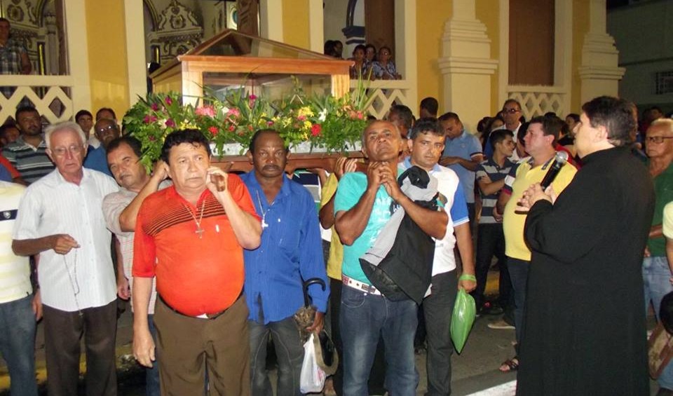 O cortejo segue e desce pela Peregrino Filho, até chegar a Catedral onde o Vigário da Diocese os espera para as últimas orações.