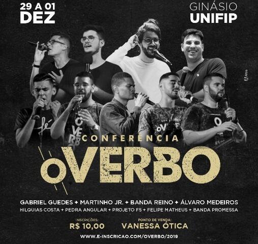 A 3ª edição da Conferência O verbo 2019 acontecerá entre os dias 29 de Novembro e 1º de Dezembro, no ginásio de esportes do UNIFIP, em Patos. O evento que já é tradição na cidade de Patos, tem repercutido em todo o estado ano após ano, tendo como objetivo unir cristãos para um momento de aprendizado através das pregações e do louvor de convidados da Paraíba e do Brasil.