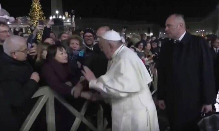 O Papa Francisco se irritou nesta terça-feira (31), com uma mulher que o puxou com uma das mãos, enquanto o líder da Igreja Católica saudava fiéis na Praça São Pedro, pouco depois de celebrar a última missa de 2019.