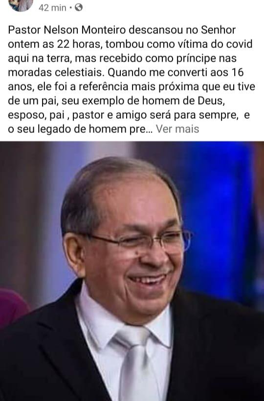 O pastor Nelson Monteiro, presidente da Igreja Missão Evangélica Pentecostal do Brasil na Paraíba, morreu nessa quarta-feira (9), em João Pessoa, por complicações da Covid-19. Ele estava internado no Hospital da Unimed.