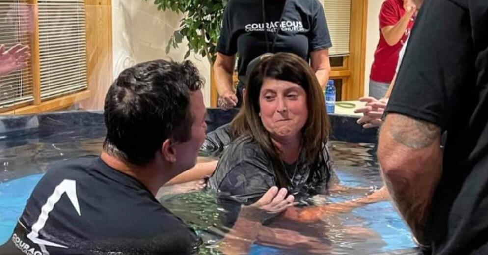 A ex-paralítica não recebeu somente a cura, mas ela decidiu se entregar totalmente a Jesus e ser batizada. Seu filho se juntou a ela nas águas do batismo.