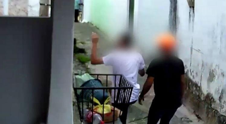 As câmeras de segurança mostram o momento em que dois homens param na porta da casa e pedem informações sobre os bolos que são vendidos pelos moradores. Após isso, eles chamam outros dois criminosos, pulam o muro e anunciaram o assalto.