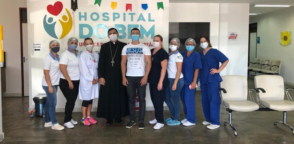 O coordenador Administrativo do Hospital do Bem, Thiago Viana, foi quem recepcionou o Bispo que fez um momento de oração com a pregação de palavras de apoio, força e estímulo para os pacientes que estavam sendo atendidos naquele momento, inclusive, os que estavam na sessão de quimioterapia. “Foi uma visita surpreendente que nos encheu de alegria e ânimo e foi um momento ainda mais motivador por tudo o que todos estamos passando”, disse Thiago, lembrando que o Bispo também se dirigiu, especialmente, para os profissionais do Hospital, elogiando-os pela dedicação para manutenção do atendimento regular aos pacientes oncológicos durante a pandemia.