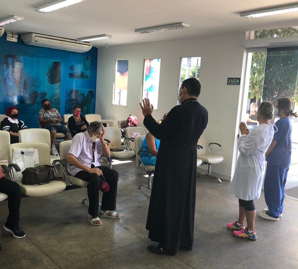 Uma visita inesperada na manhã desta quarta-feira (12), mas que trouxe benção, conforto espiritual e alegria mudou a rotina, por instantes, do Hospital do Bem, de Patos. É que de surpresa, o Bispo da Diocese, Dom Eraldo da Silva, esteve na unidade para realizar um momento de oração. No hall do Hospital, que trata de pacientes oncológicos e que integra Complexo Hospitalar Regional Deputado Janduhy Carneiro, o religioso fez uma pregação dando apoio e força para todos que estão trabalhando e para pacientes que estão sendo assistidos mesmo com a atual conjuntura de pandemia.