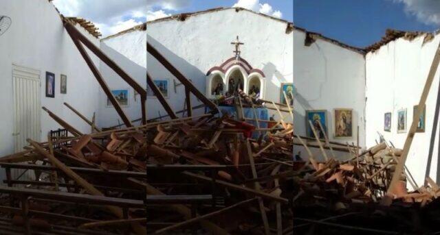 Teto de capela desaba em Diamante e fieis acreditam em milagre; saiba porque
