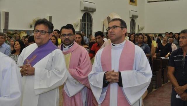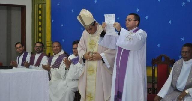 Dom Eraldo Bispo Diocesano foi quem presidiu a celebração eucarística de posse. Além de Pe. Cláudio Oliveira, estiveram presentes concelebrando, o Pe. Erivaldo Alves, Pe. João Batista, Pe. Edvan, Pe. Espedito Caetano, Pe. Alixandre Soares e o Diácono Permanente Rossini.