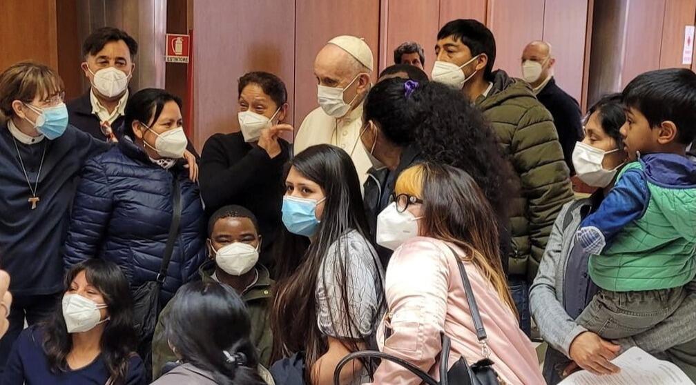 Papa encontra pessoas carentes que recebem vacina no Vaticano