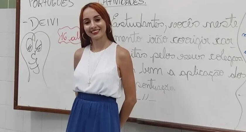 Em sua página do Instagram, a professora publicou uma foto na sala de aula com a descrição de dois versículos bíblicos: