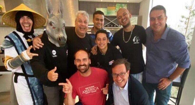 “Pessoal, estou gravando o próximo 'O Brasil Precisa Saber' diretamente de Manaus, porque a gente tem uma presença muito especial, olha só… É só isso”, disse Eduardo no Instagram ao lado de Sikêra Jr. Nas imagens, é possível ver Flávio no fundo.