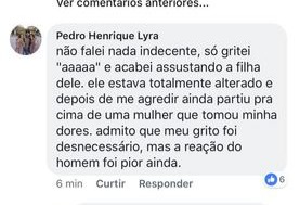 Ainda de acordo com relato do jovem, o pai da criança teria se "alterado" e xingá-lo e colocar dedo no seu rosto, segurou o menino pelo pescoço, dando-lhe um tapa no ouvido em seguida. Depois da agressão, o homem , como conta o garoto, partiu para cima de uma mulher que estava lhe defendendo.