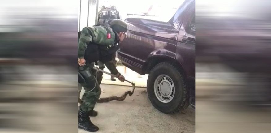 Polícia resgata jiboia de 1,5 metro em Patos que estava enroscada nas ferragens de carro; veja