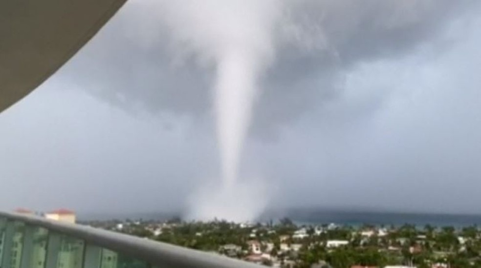 Moradores de Golden Beach, no sul da Flórida, registraram nesta quarta-feira (19) o momento em que uma tromba d'água chegou à praia e se transformou em um tornado.